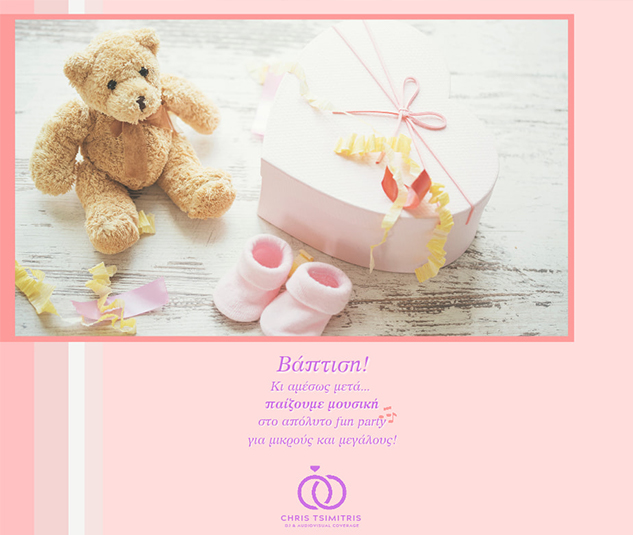 Πόση χαρά και ευτυχία μπορεί να δώσει η βάπτιση ενός παιδιού σε εσάς και την οικογένειά σας! Εάν, αυτή τη χαρά μπορεί να συνδυαστεί με χορό και κέφι, τότε θα χαρώ να συμβάλω!